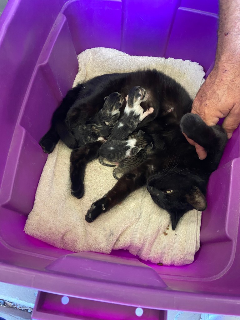I wrote all about Minksi in my first post. At that time, we weren’t sure if she would actually stick around or run away as she would not be capable of being an indoor cat or live in the house at all. But now she has her own little routine, and she stays out all day until we get home from work. The garage door opens and she’s in and out of it as she pleases while Daddy tinkers around in the garage. The garage has become her sanctuary. She’s all black but there is something very regal and poised about the way she moves and interacts with everyone. If she were a person, she would be mysterious, quiet with a feisty side, and completely elegant. I’m now so happy she chose us and our home to have her kittens. I think she knows we loved and cared for her and her kittens and she’s loyal to us now.