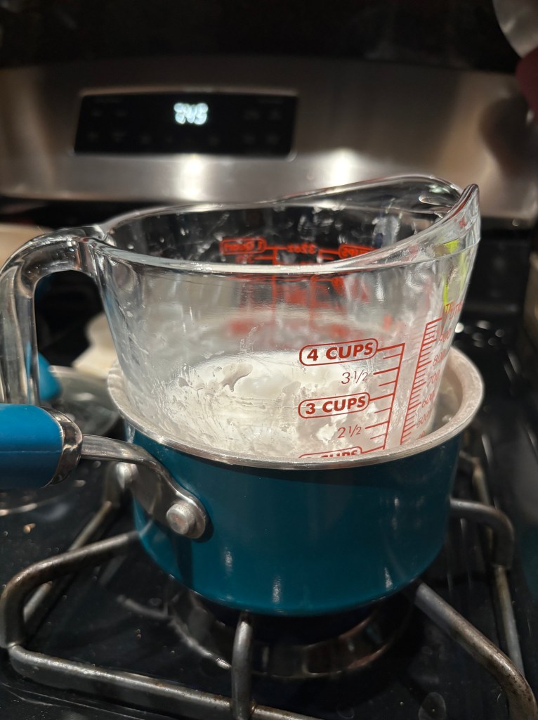 First, I want to say that I’m not much of a crafter. I did make cards for a few years but gave it up when the taking out and putting back of everything became exhausting. And with the soap-making, I really wanted to start off very economical, so I chose to purchase 1 pound of goat’s milk soap on Amazon from a company called EDSRDRUS for $8.99. That was not smart! I soon found out it was actually pricey for soap base. Also, it said it was fragrance-free; however, although very nice, it definitely had a fragrance. I also bought a set of 3 molds for $9.99, a laser thermometer for $9.49 and a 2 oz bottle of Bramble Berry Cashmere fragrance oil as well from Amazon. Buying 2 oz of fragrance oil was also not smart! 2oz is a lot. Also, any tools you use must be only for soap making and not just cleaned and used for cooking. This is very important according to soap makers, so I bought a Pyrex measuring cup and a heat-safe plastic one as well. I didn’t need to buy a soap cutter because the soap came pre-cut.